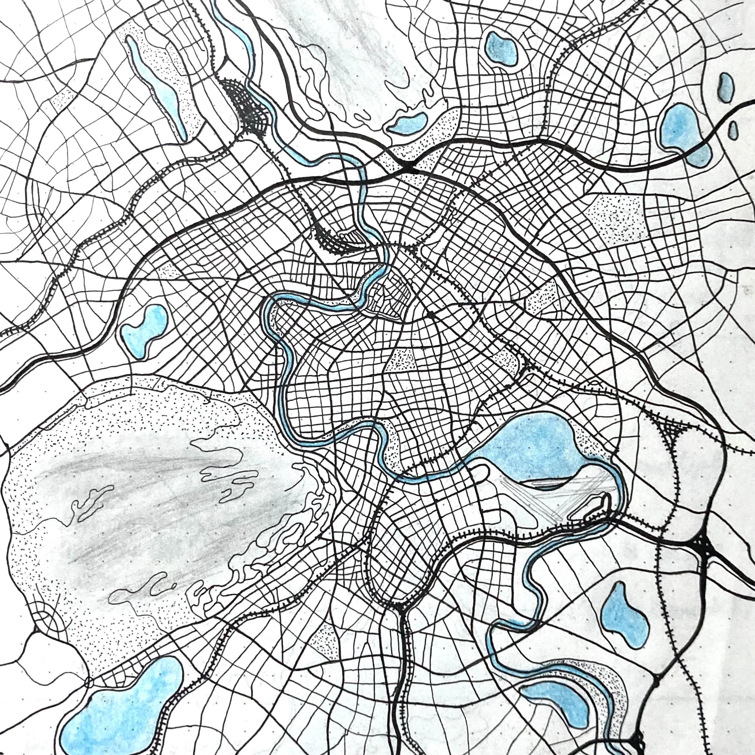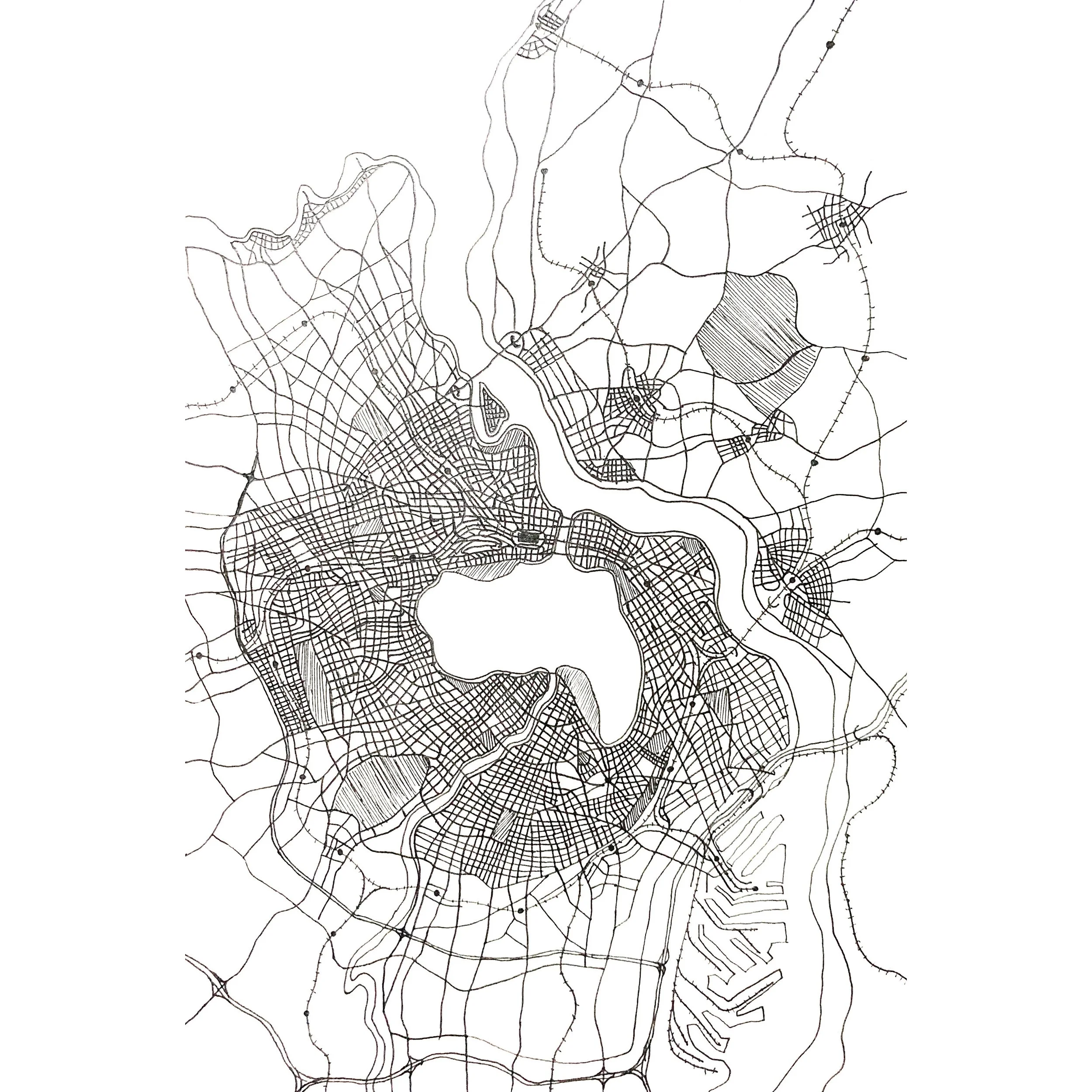 This is an ongoing collection of my hand-drawn maps. While the geographies are imaginary, they are inspired by real maps, real urban forms, real experiences. I also hope to explore a wide range of representational techniques by playing with stroke width, color, patterns, schematization, shading, offsetting etc. Some maps are accompanied by a specific narrative, others leave room for the viewer to construct a narrative.