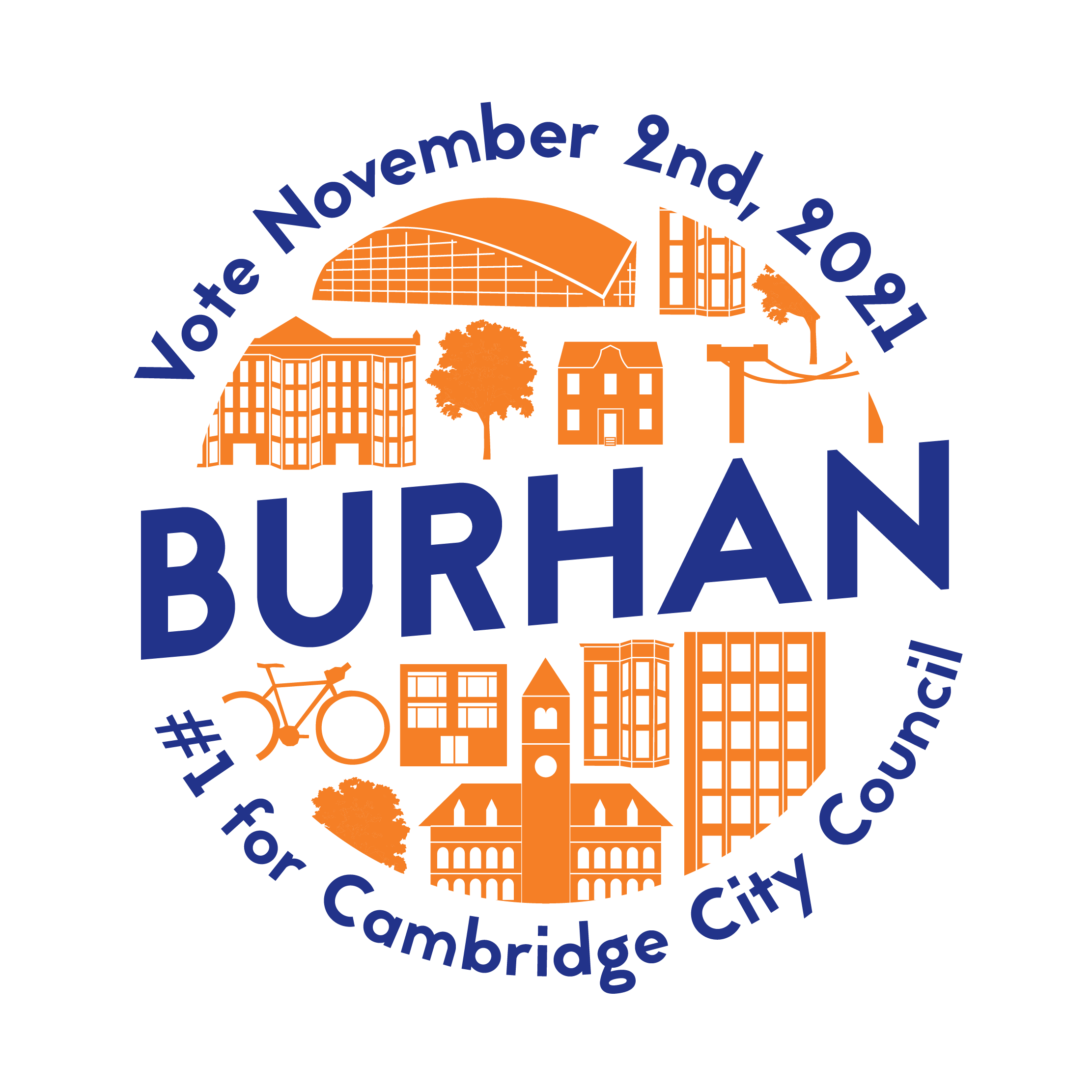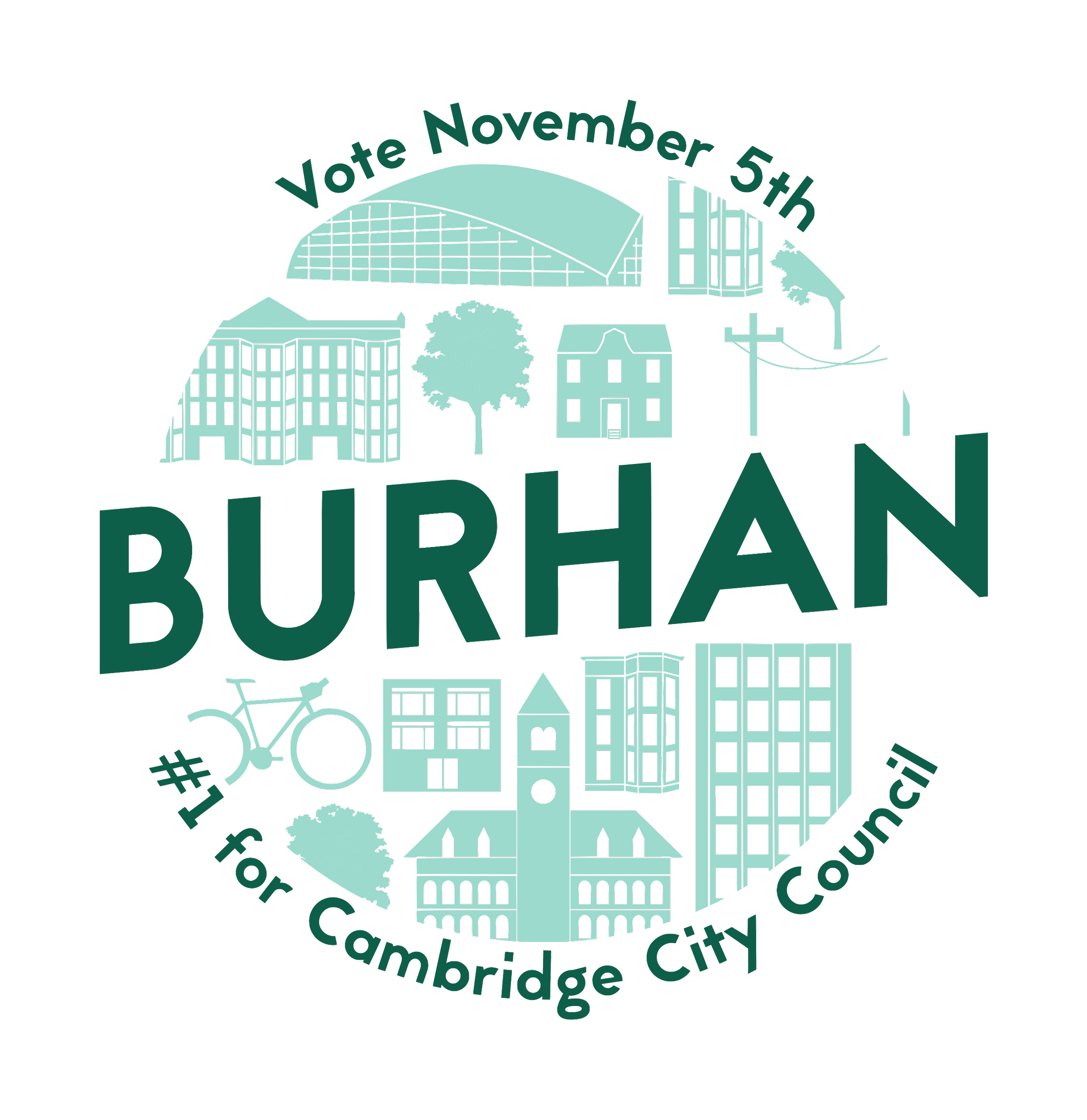In 2019, I designed a campaign logo and visual identity for Burhan Azeem, a young candidate focused on sustainability and housing issues running for Cambridge City Council. Burhan was runner-up in the 2019 election.
